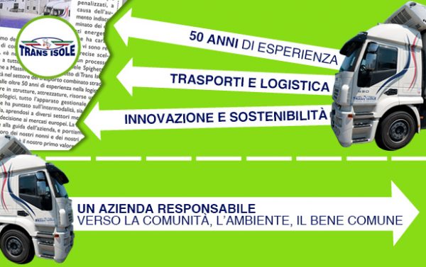 Trans Isole è un marchio che, anno dopo anno, raggiunge successi sempre più importanti in termini di fiducia e di fatturato. L’obiettivo dell’azienda è quello di essere un partner globale per i trasporti su strada e intermodale marittimo in Europa e nel Bacino del Mediterraneo.